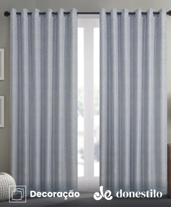 É uma cortina com 4,50 m de largura e 2,50 m de altura, apresenta estampa delicada que valoriza o ambiente. Auxilia na redução de reflexos indesejados e é ideal para varão de até 3,00 m, garantindo ótimo caimento e acabamento elegante.
