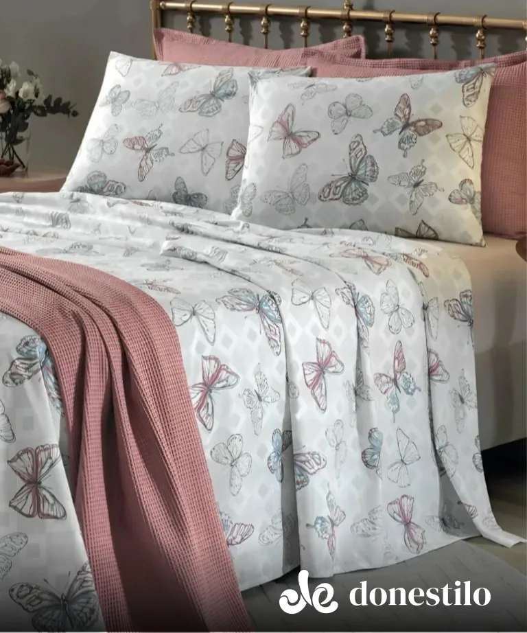A estampa delicada de borboletas adiciona leveza, charme e sofisticação ao seu quarto.