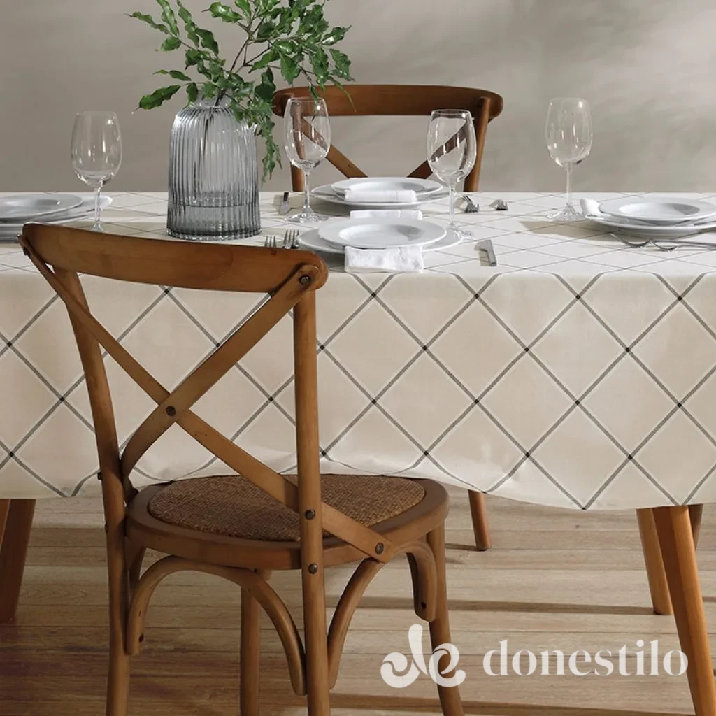 A Toalha de Mesa Retangular Athenas Ieda 1,60 × 2,50 m traz um estilo minimalista e elegante para a mesa. A estampa moderna apresenta linhas que formam um padrão geométrico contemporâneo.