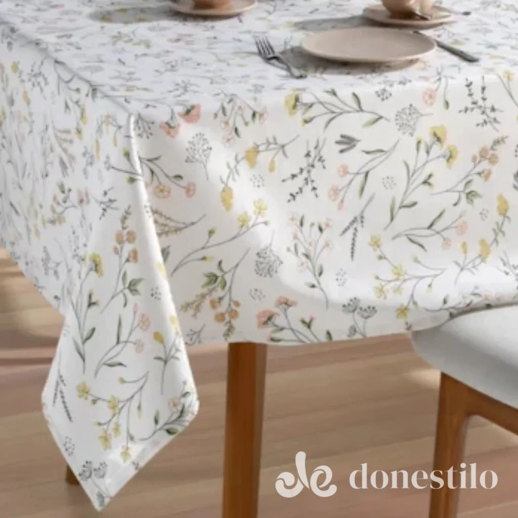 Ideal para mesas retangulares grandes, possui estampa floral delicada e tecnologia Döhler Clean que facilita a limpeza diária.